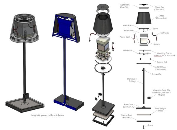 We started the project by looking at current products and creating sketches for different direction for the form and product architecture. We discovered a market opportunity for a compact, elegant battery powered lamp. Using our competitive analysis, we started formulating the target product specifications.